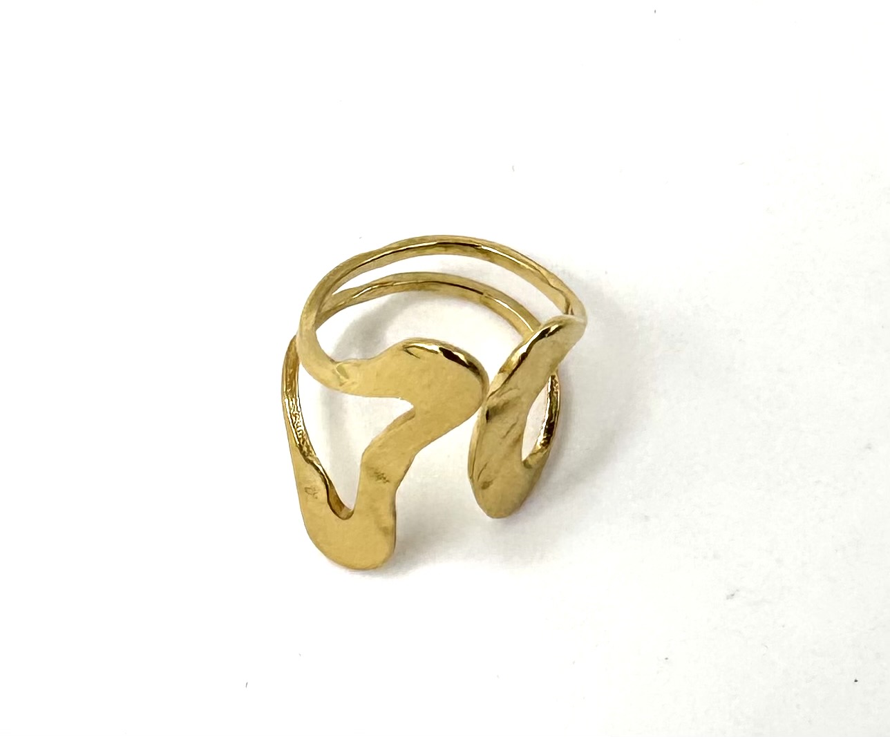 Nuestro anillo de diseño fluido inspirado en formas orgánicas, crea un efecto visual