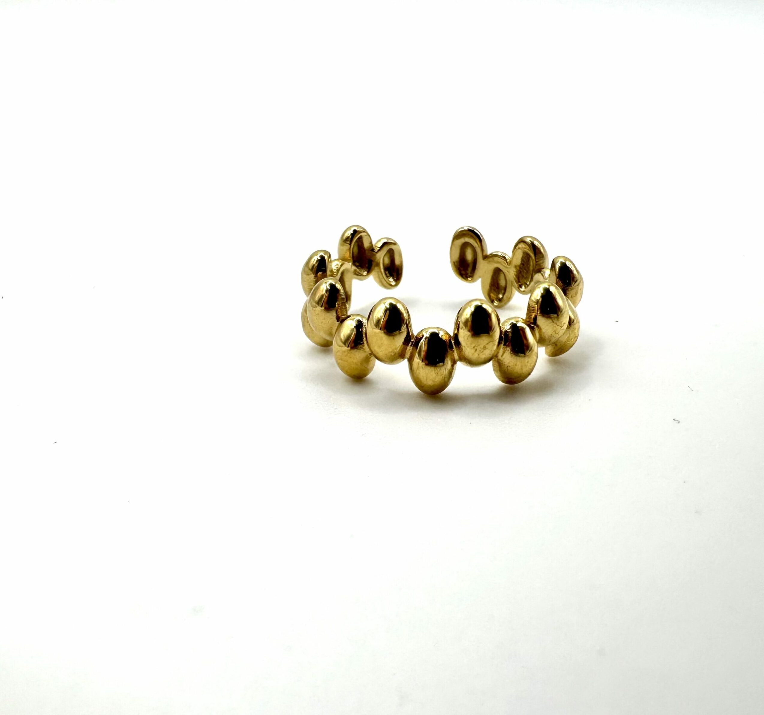 Dale un upgrade a tus looks con este anillo dorado waterproof de esferas: ligero, brillante y súper versátil. Su diseño abierto permite ajustarlo fácilmente a tu medida, así que siempre queda perfecto. Es el accesorio ideal para sumar un toque chic.